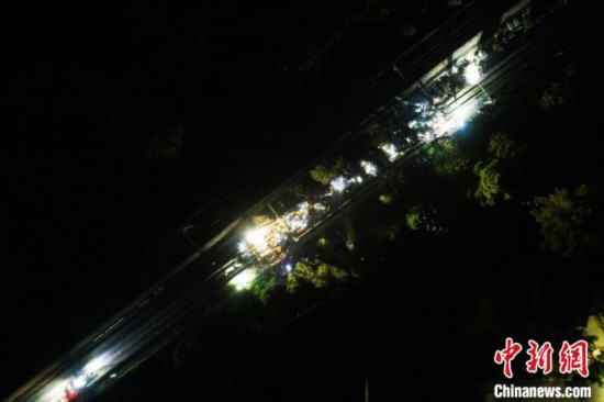 作业人员在普速京广线军田至银盏坳区间进行机械换枕施工作业 (无人机图) 陈诚 摄